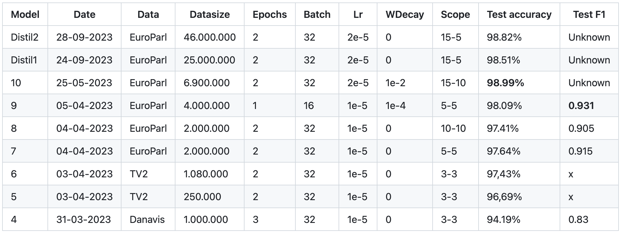 With Sep-2-sep the results were unreliable and the training time too costly, so I decided to move on with a Danish, pre-trained BERT. The dataset then had to be fairly simple to create. (As of Feb 2024, seq-2-seq might actually be the right solution as the growth in GPTs has been enormous, so definitely check Huggingface out!)