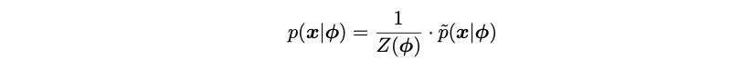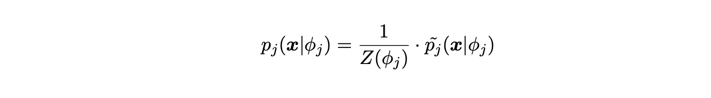 Klein et al. 2020Furthermore, the normalization constant Z(ϕ_j) for each component p_j (x, ϕ) is intractable. But as mentioned earlier, this can be excluded mathematically since the shape of the distribution is not affected, though it will be included computationally. However, there is still a problem at hand, namely parameter estimation.
