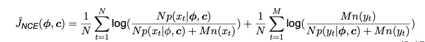 Where both c and ϕ are free parameters. The objective function, JNCE is the log-likelihood of the logistic regression classifier, which can be optimized through an iterative loss approach in any gradient based package like Pytorch.