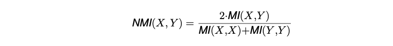 Hereafter one can investigate how much mutual information there is between the estimated torus graphs and the actual data. For this, a simple normalized mutual information coefficient has been used, where the above equation is used as the input for our estimated values. The mutual information between two vectors, {x, y}, is calculated as: